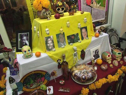 Minden otthonban ezért kaput nyitnak, azaz elkészítik a színpompás Holtak-oltárát. Az oltárra a négy elem reprezentációjaként a fényt, azaz gyertyákat, a föld kincseit, azaz ételeket, rengeteg színes virágot, a vizet és italokat és a levegőt szimbolizálva füstölőket tesznek. Ezen az asztalon, megvendégelik a holtak ideérkező lelkeit. A fény, a színek, az illatok, az ételek, az italok és az egész oltár hívja meg ezeket a lelkeket.