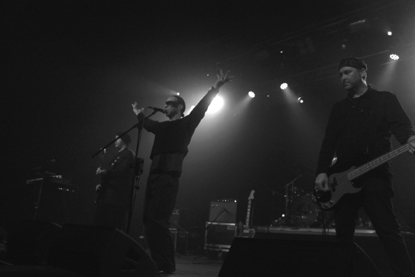 Némi gyakorlatias kitérő. Első ízben hallgattam koncertet a Dürer frissen megnyílt nagytermében. Szellőzés és hangzás jó, hangulatilag ugyanaz a semmitmondó, célszerű nagy sötét doboz - mondjuk úgyis a zene a lényeg. A közönség igazán vegyes, a dark színtér figuráinak szinte teljes hiánya, mégis minimum kétharmad ház, ami saccra négyszáz főt is elérhet. Néha jól el tud találni a Man + Machine szettje, ez a warmup engem inkább üldözött. Lehet értelmezni az EBM-et többféleképpen nyilván, itt ígéretként ez és posztpunk volt belengetve, ehhez képest gyakran döngölő techno-nak tűnt inkább - többen grimaszolva fordultak ki a tánctérről.